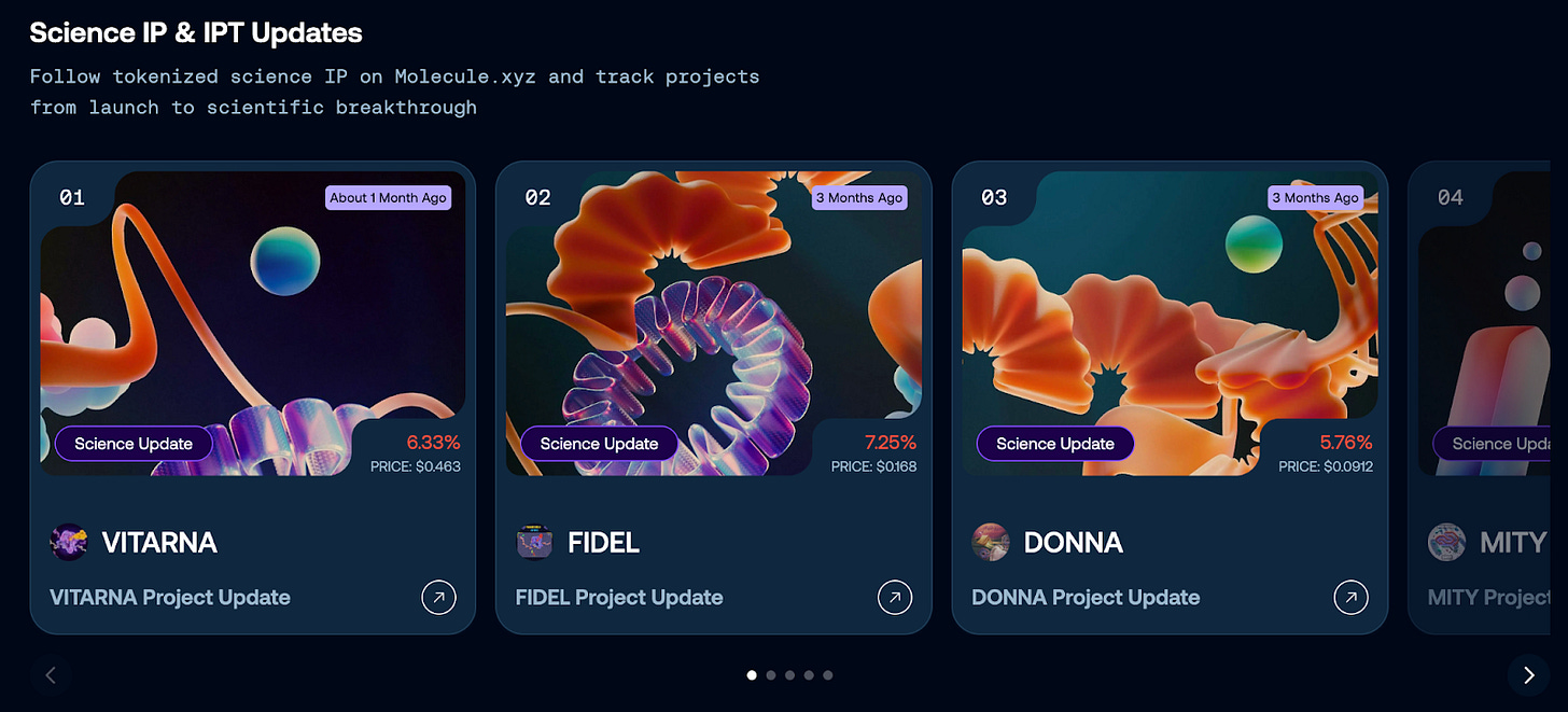 Much of what we do is designed to bring the research data closer to the DeSci community. For end of the year, we’ve upgraded the Screener Home Page so you can easily filter through the latest science updates from trading IPTs, all in one place.